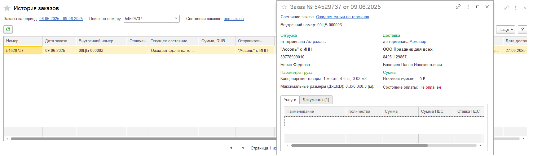 Добавлен вывод внутреннего номера заказа при просмотре заказа из списка История заказов.