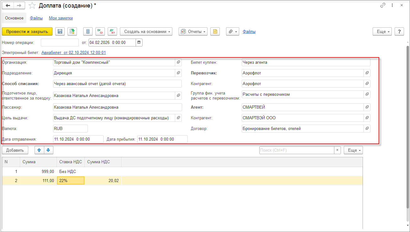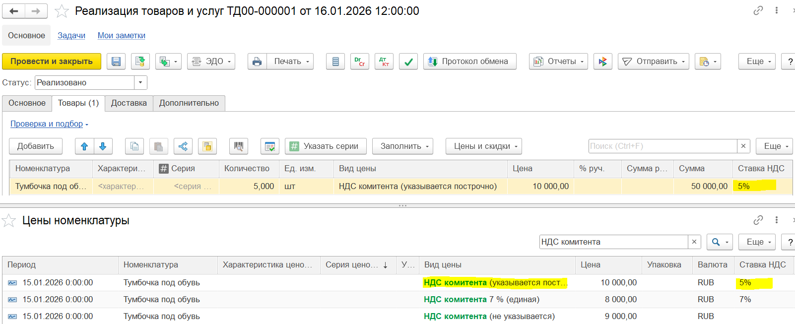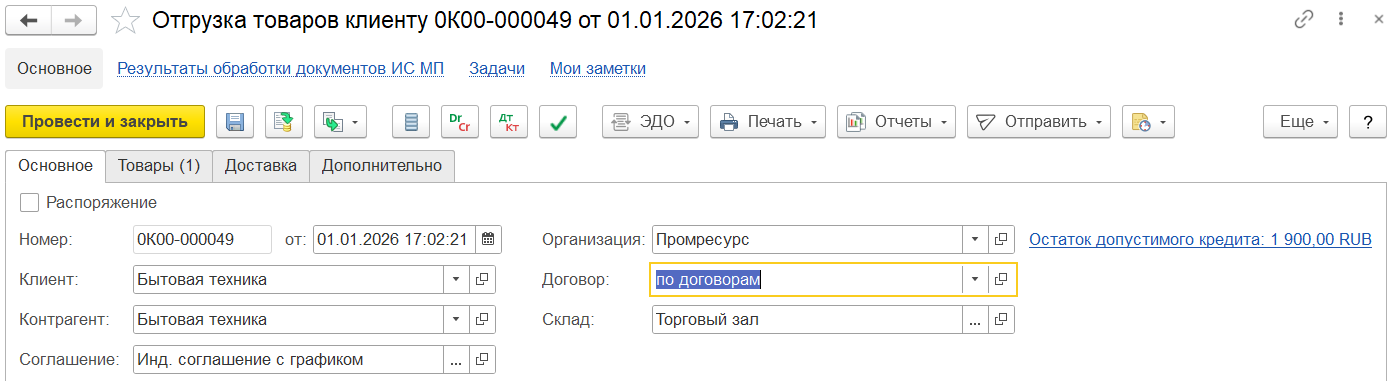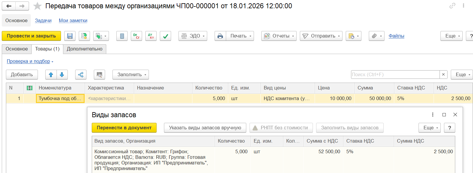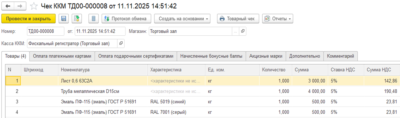 После заполнения товаров можно перенаправить документ для заполнения и уточнения цен.