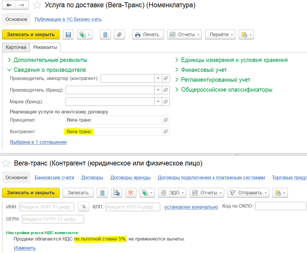 Реквизиты используются при подготовке ответного титула.