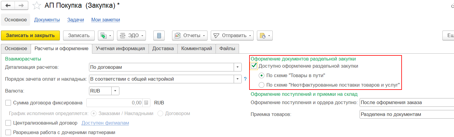 Документ Заявка на закупку (Закупки – Закупки – Заявки на закупку) доступен при включенной функциональной опции НСИ и администрирование – Настройка НСИ и разделов – Закупки – Документы закупок - Заявки на закупку. Оформление заявок на закупку доступно при включенной опции Заказы поставщикам.