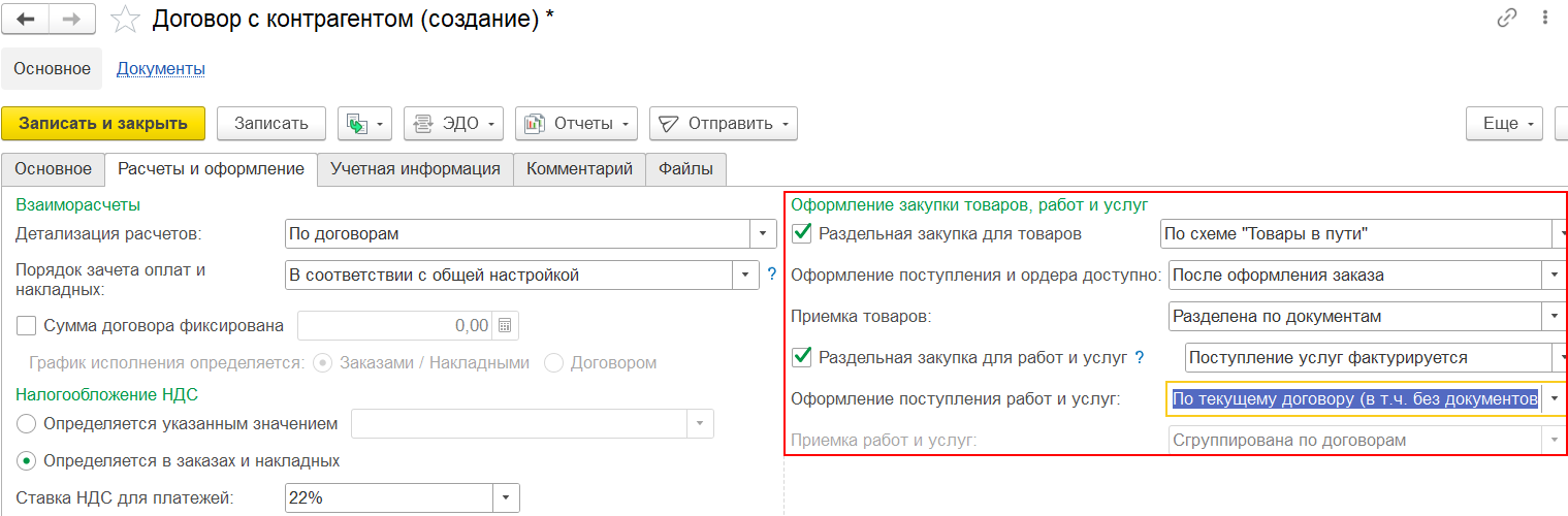 В документ Приобретение услуг и прочих активов добавлены новые реквизиты: