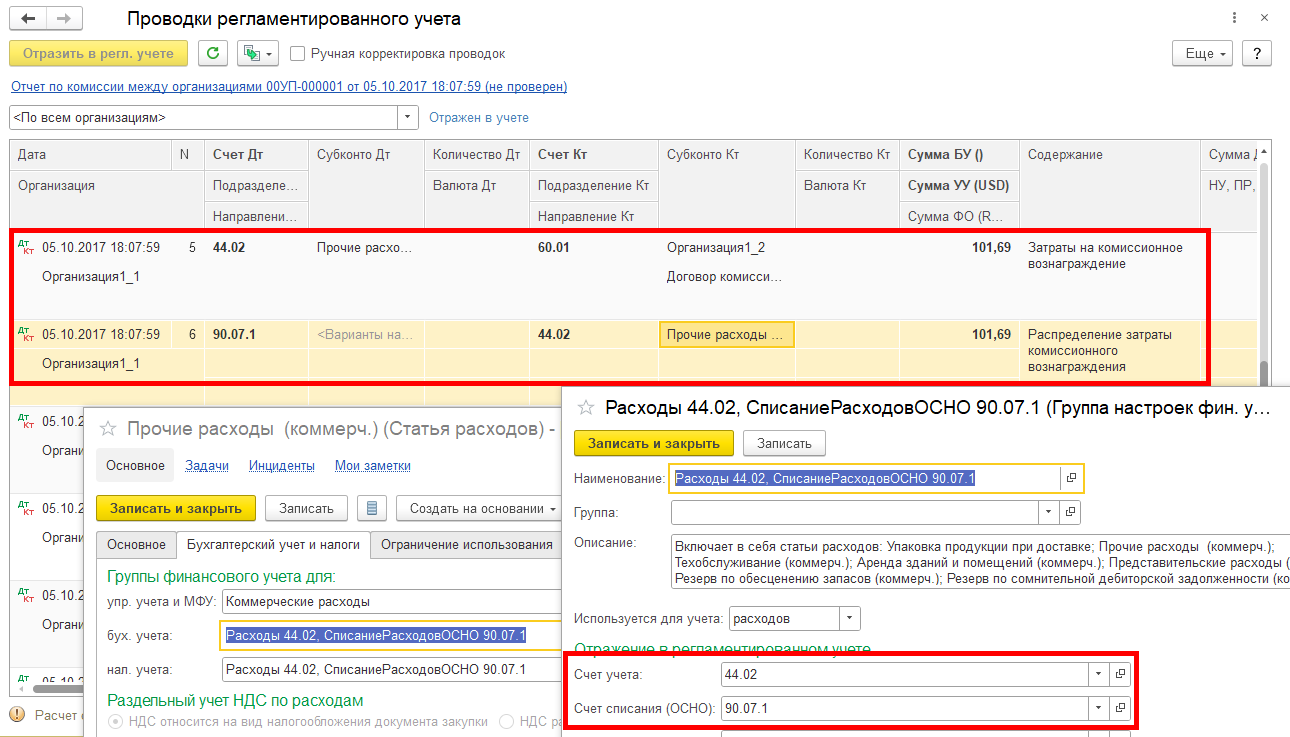 Результат включения/исключения НДС не влияет на рассчитанную в документах среднескользящую стоимость товаров и учитывается как отклонение в регистре Отклонения в стоимости товаров. Движения по включению/исключению НДС формируются регламентным документом Регистратор расчета себестоимости. При перезакрытии месяца движения формируются новым документом Регистратор расчета себестоимости только на разницу между текущим и предыдущим расчетом.