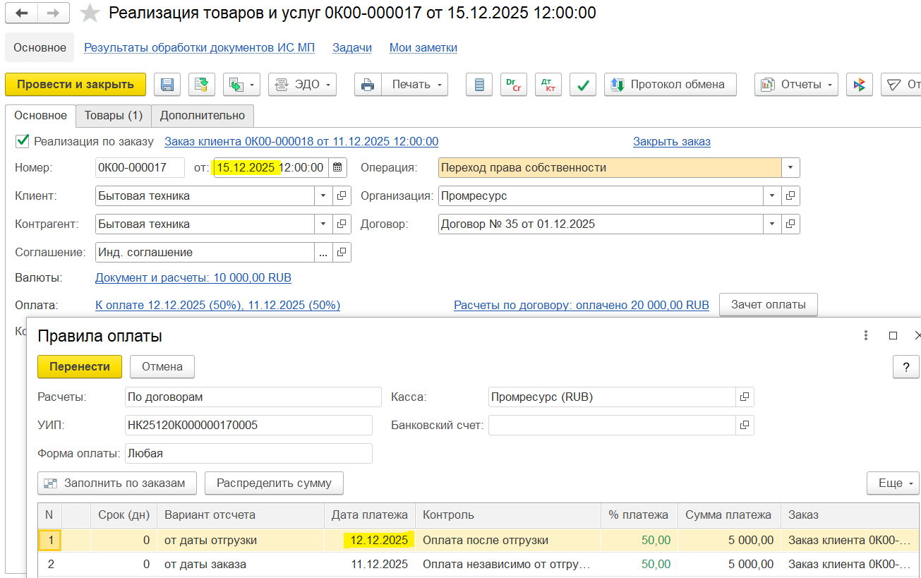 При разбивке сначала берутся цены, выбранные в первом (по дате) запросе коммерческих предложений. Внутри запроса коммерческих предложений выбранные позиции не упорядочены, результат случайный, но всегда одинаковый, если документы не изменялись (сортировка по номеру строки скрытой таблицы «ВыбранныеИсточники»). Такой подход позволяет после разбивки заполнять цены с тем же результатом и независимо от количества выделенных строк.