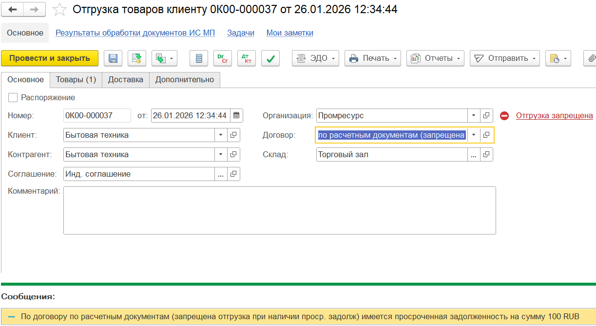 Не поддерживаются способ оплаты через интернет-эквайринг и Ozon pay, а также передача ссылки на онлайн-заказ в сервисе 1С:Share.