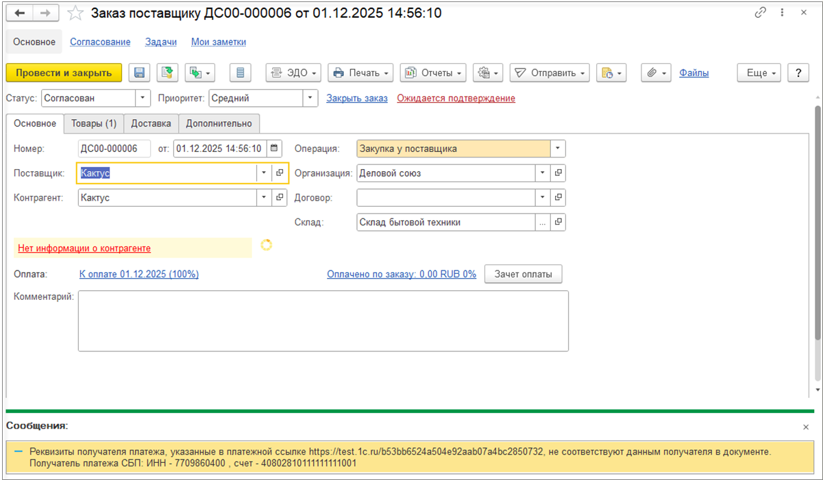 На этапе согласования заявки проверка отклонений от условий закупки не выполняется, но можно сформировать соответствующий контекстный отчет Отклонения от условий закупок.