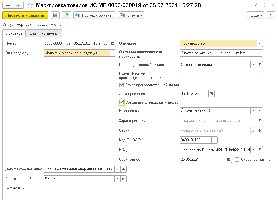 При применении команды по созданию будет сформировано корректировочное уведомление с присвоением очередного номера корректировки (документ Уведомление об остатках прослеживаемых товаров).