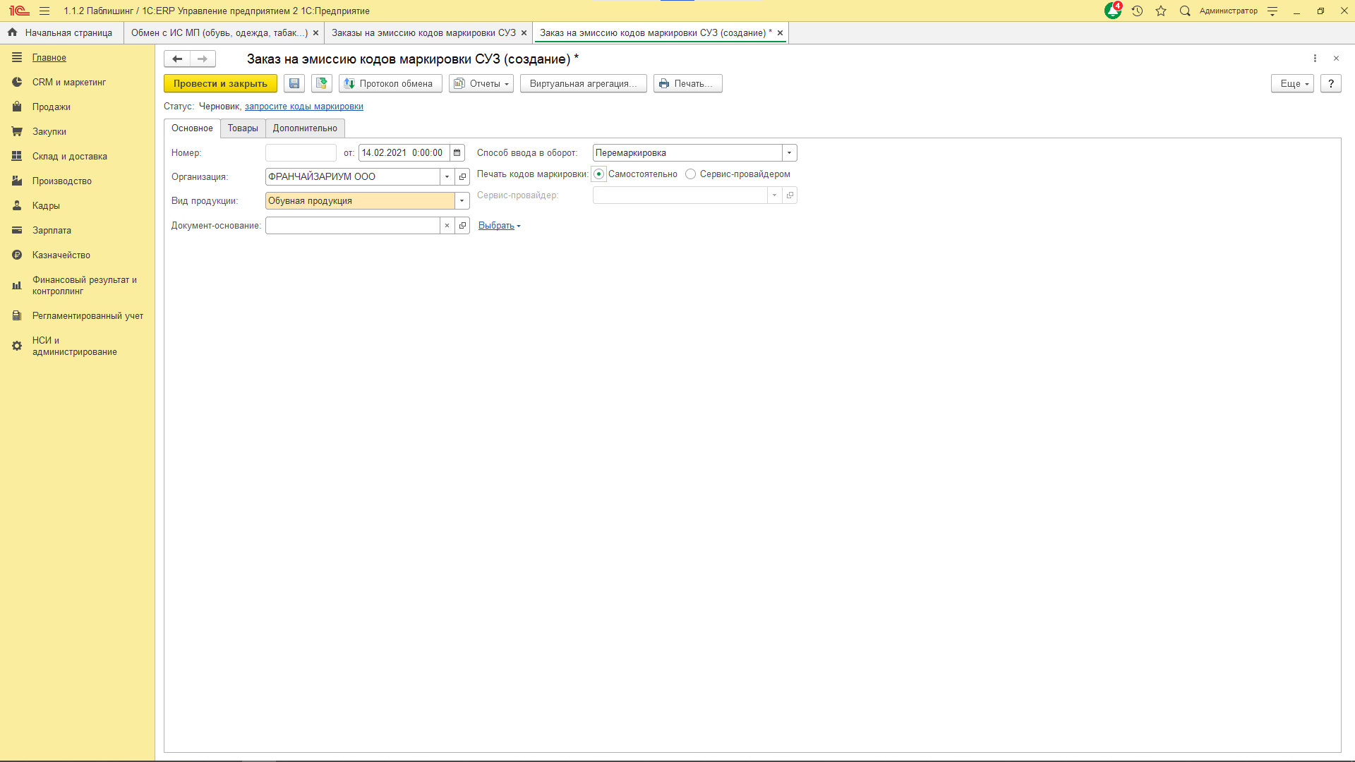 Для формирования уведомлений об имеющихся остатках товаров, подлежащих прослеживаемости, предназначен документ Уведомление об остатках прослеживаемых товаров.
