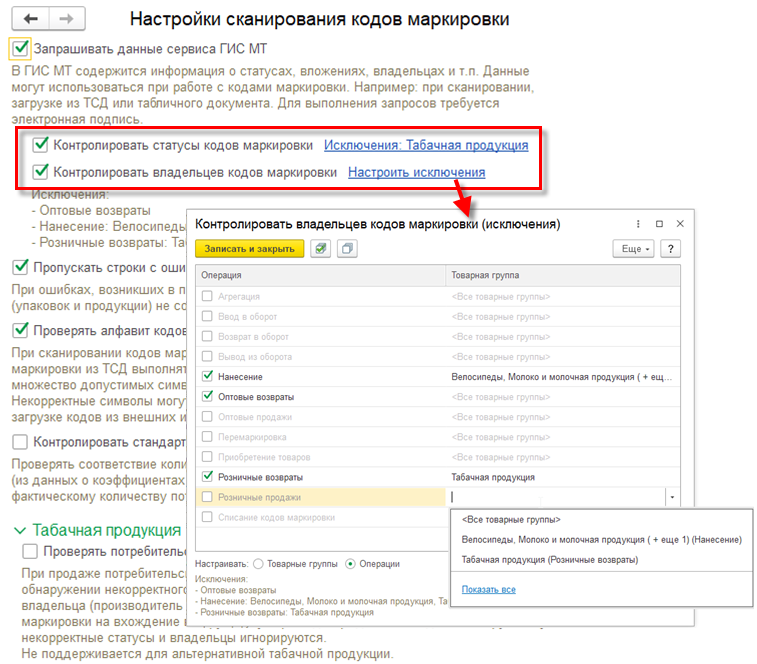 Все действия по учету прослеживаемых товаров можно выполнять в рамках единого рабочего места Учет прослеживаемых товаров, которое доступно по ссылкам: