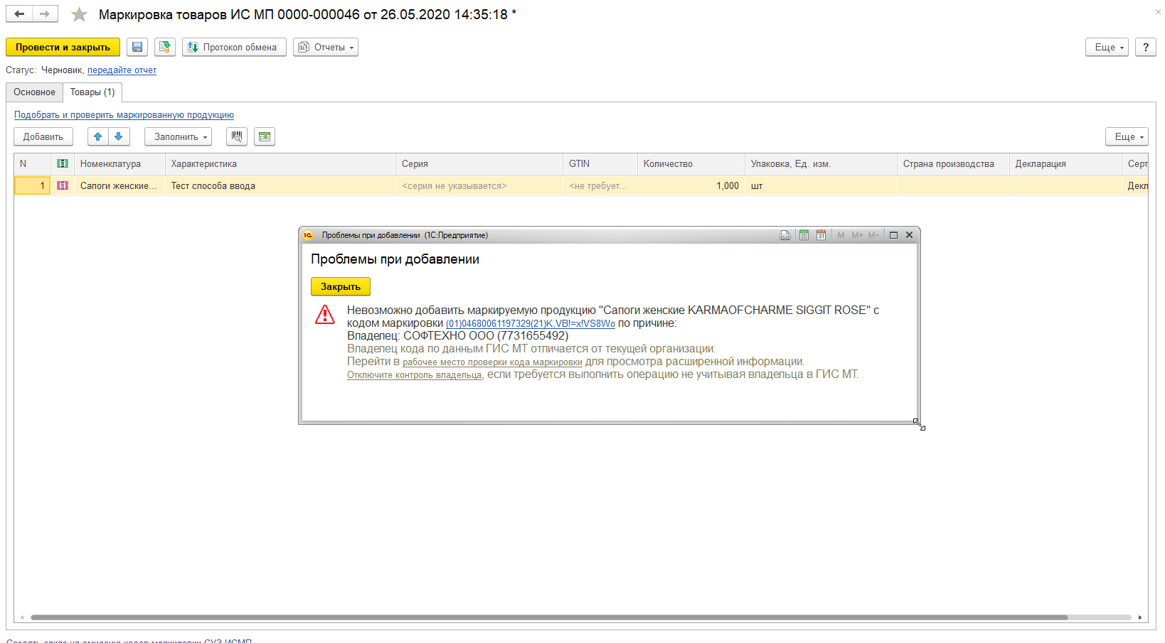 В приходных документах для товаров с прослеживаемыми кодами ТН ВЭД осуществляется контроль обязательного заполнения номеров ГТД вне зависимости от установленной опции Запретить поступления товаров без номеров ГТД (НСИ и администрирование – Настройка НСИ и разделов – Учет НДС, импорт и экспорт).