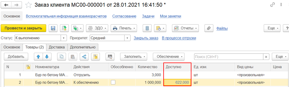 При получении документа через ЭДО прослеживаемое количество заполняется автоматически.