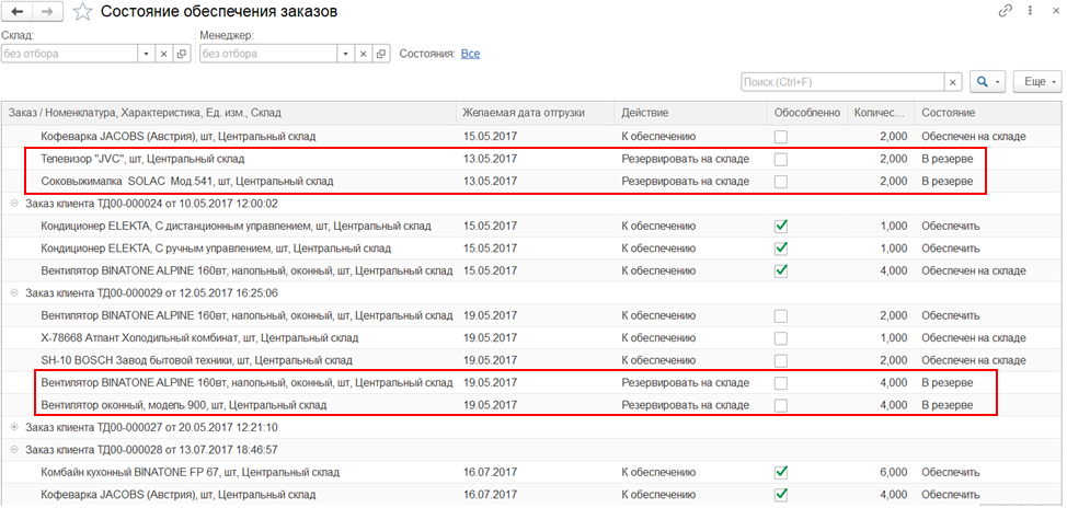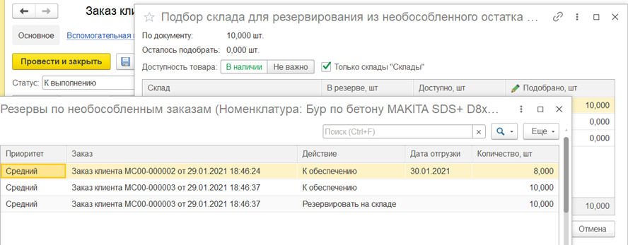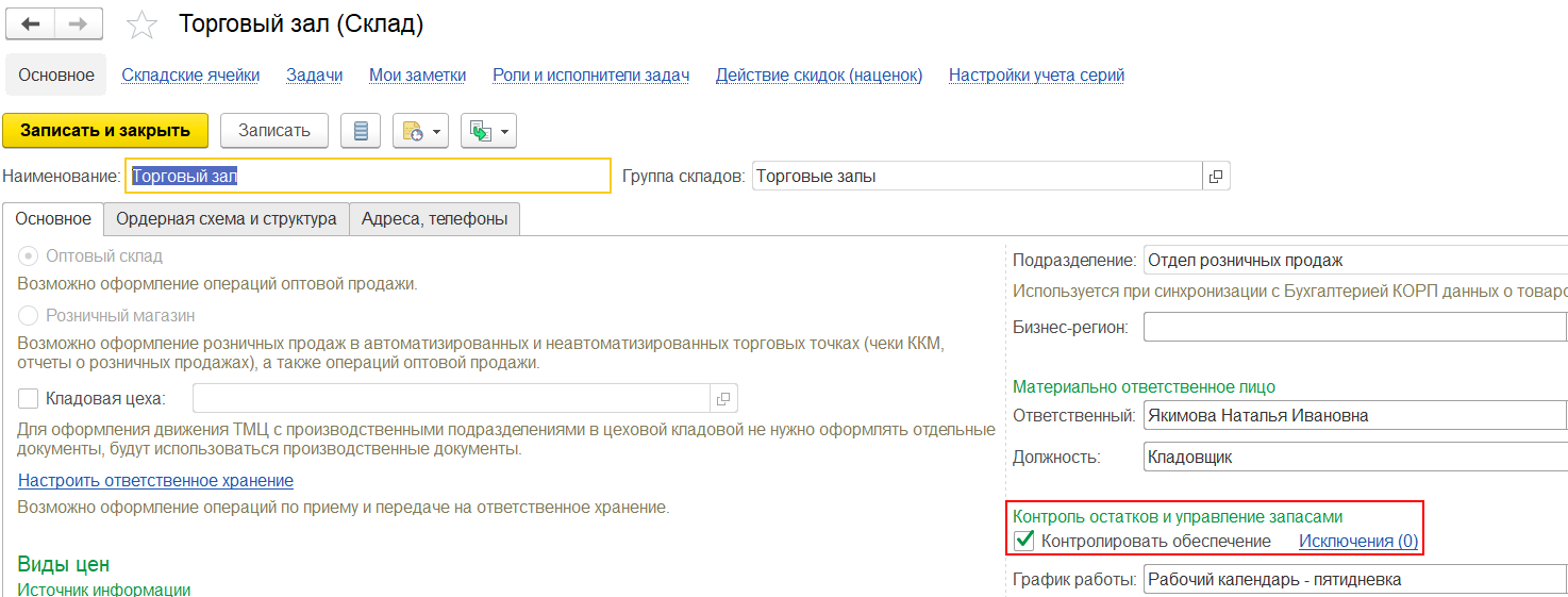 Для организации пересчета товаров оформляется документ Пересчет товаров. В случае использования ордерной схемы документооборота при проведении документа Пересчет товаров в статусе Выполнено изменяются фактические остатки товаров на складе.