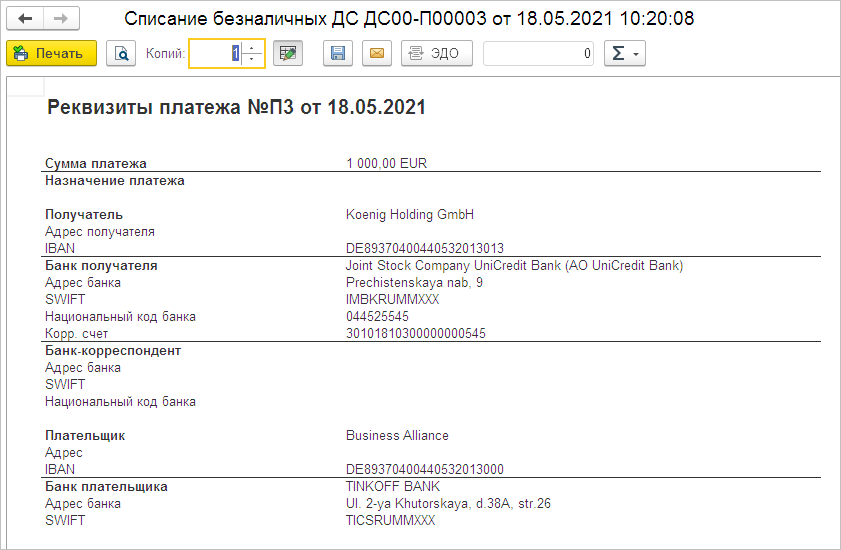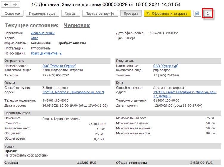 Поддержана работа с документом "Счет на оплату" менеджера сервиса.