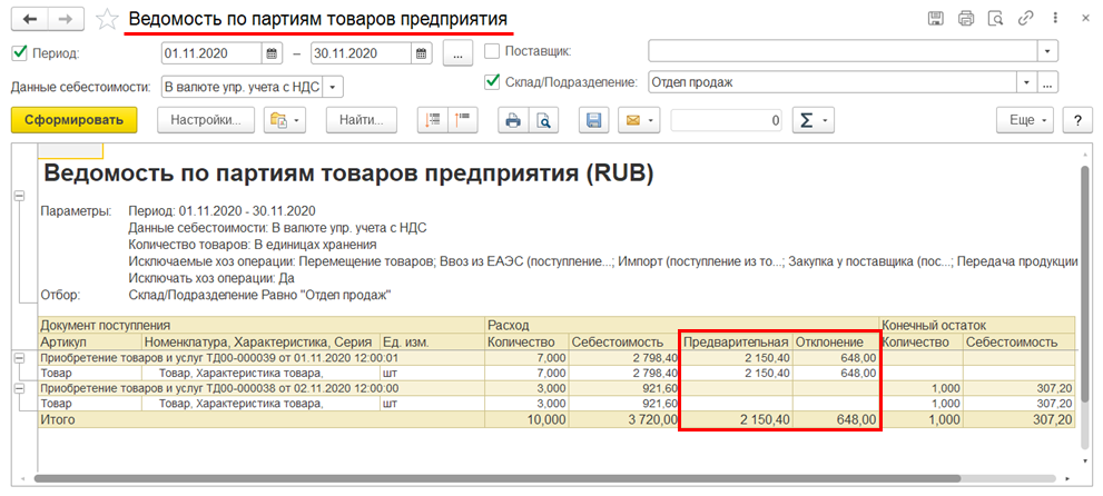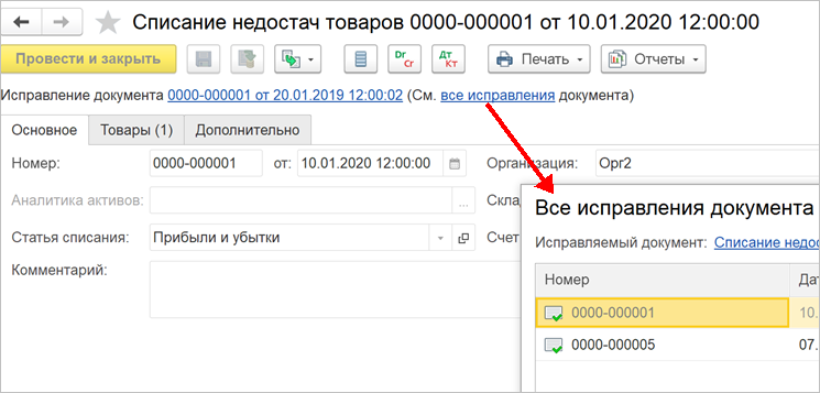 При обсчете «новых» движений исправительного документа с приоритетом используются партии, которые в результате «образовались». Таким образом, минимизируется влияние исправлений на учет. При исправлении приходного документа партией остается исходный исправляемый документ.