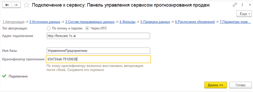 Для автоматического получения прогнозов продаж с минимальным участием сотрудников и первоначальными настройками, по накопленной истории продаж, предназначен сервис «Прогнозирование продаж». Сервис прогнозирования продаж интегрируется с прикладными решениями на платформе «1С:Предприятие».