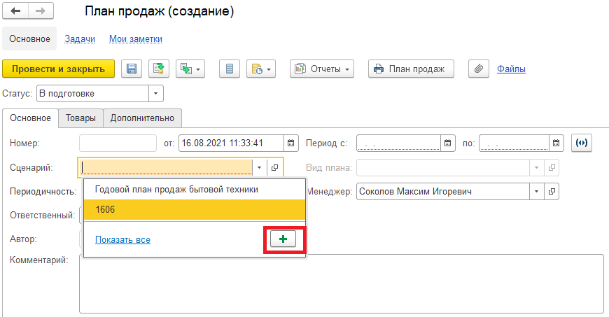 При создании сценария, кроме наименования и периодичности, требуется решить, в каком положении оставить переключатель «Планирование продаж»: