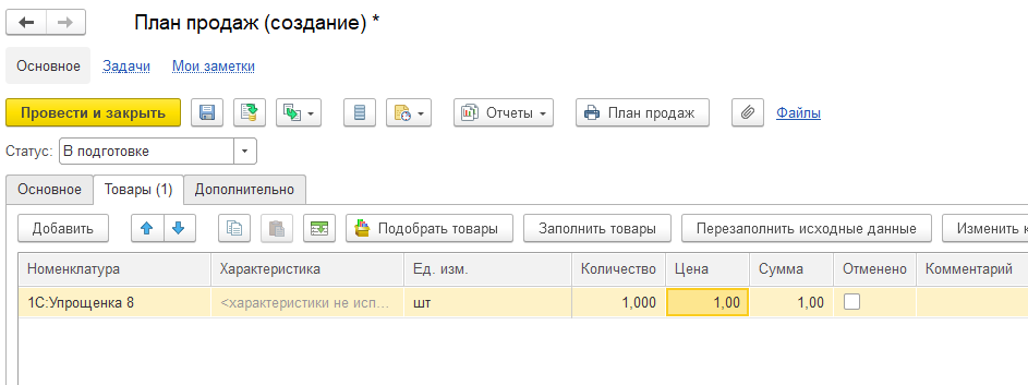 При этом действие «К обеспечению» позволяет зафиксировать потребности в заказах без автоматического резервирования товаров на складе.