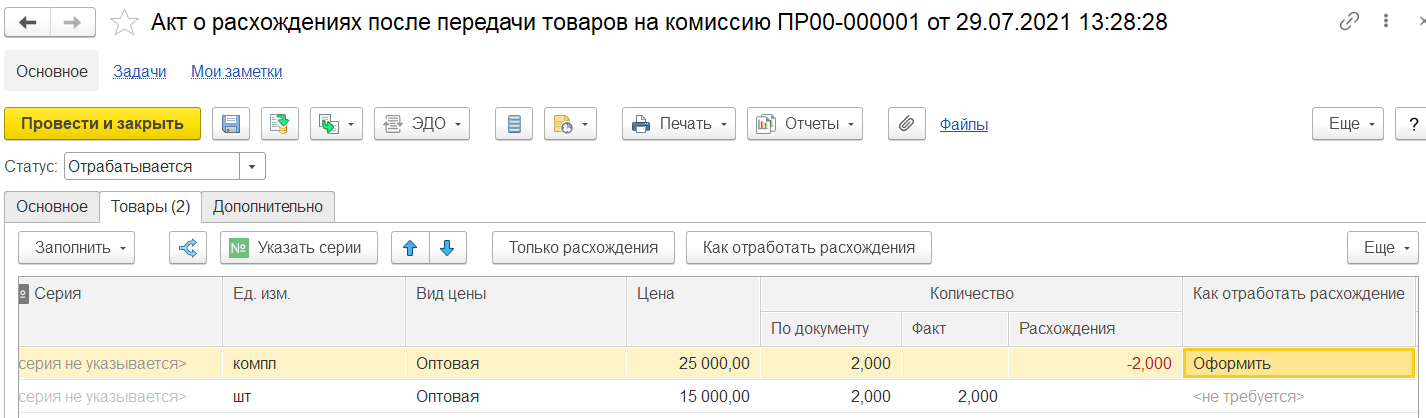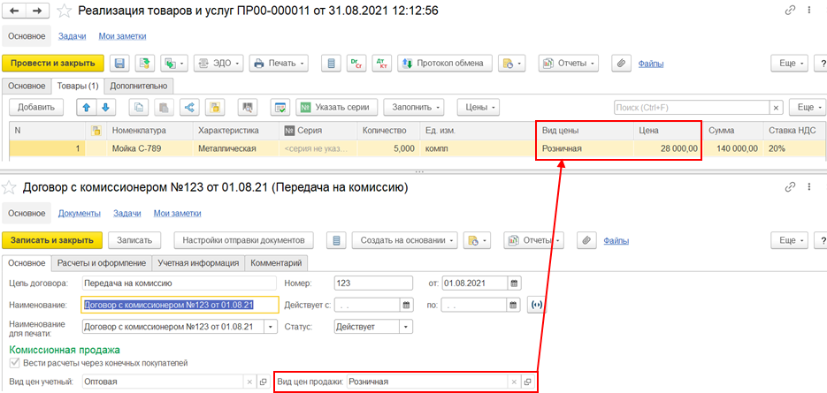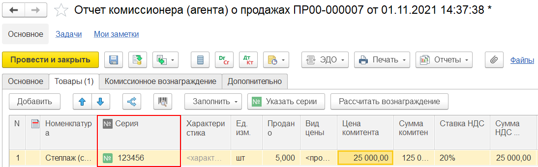 Авансы, счета-фактуры на аванс, реализация на экспорт через комиссионера, реализация с отложенным переходом права собственности, корректировочные/исправительные счета-фактуры, расчеты с конечными покупателями не поддерживаются при использовании документа отражения продажи «Отчет комиссионера о продажах». Отчет комиссионера позиционируется для отражения факта розничных продаж.
