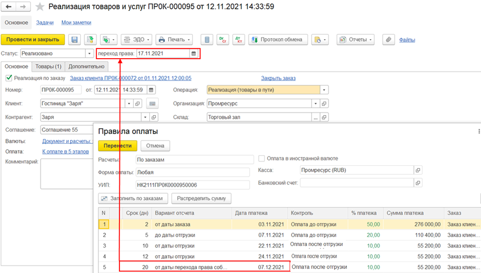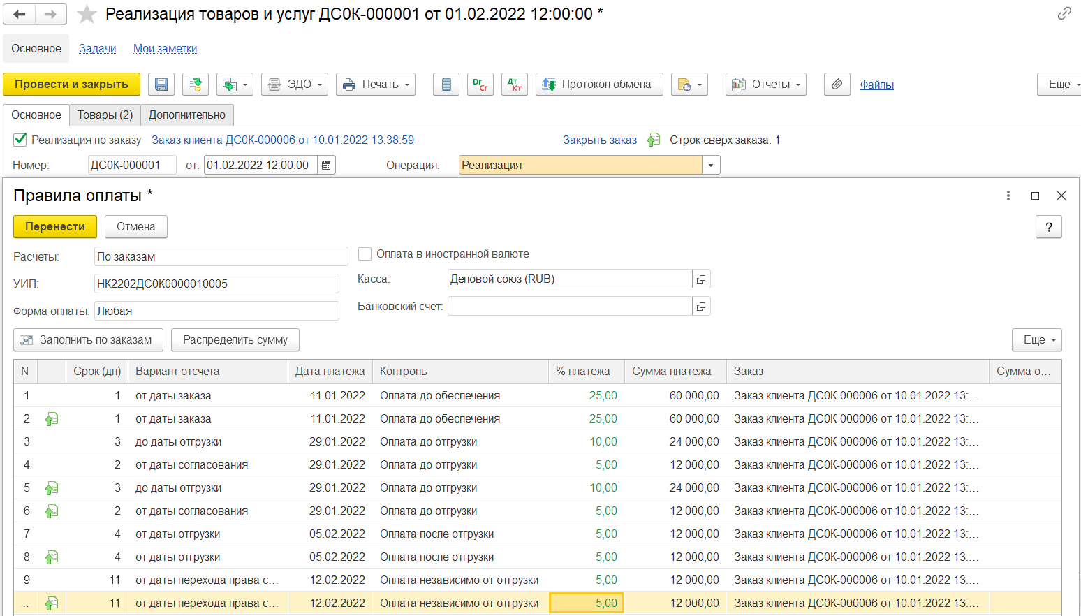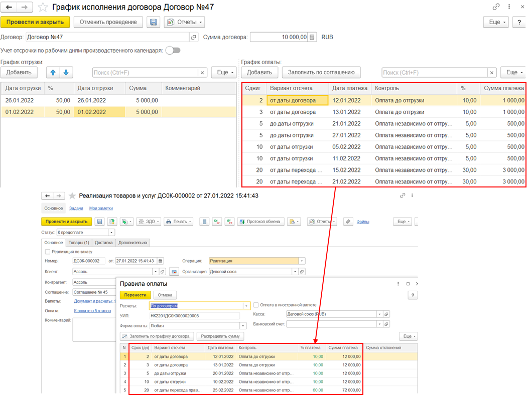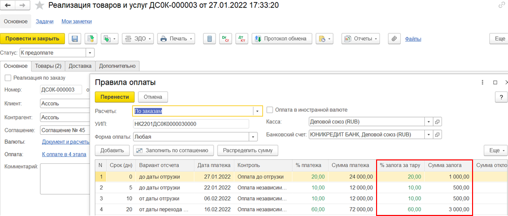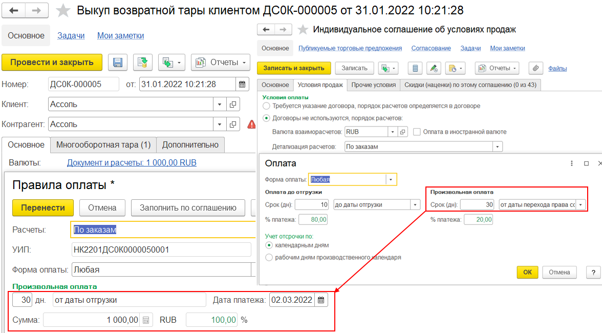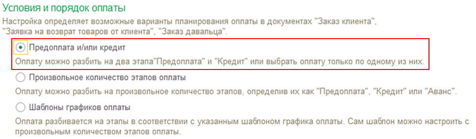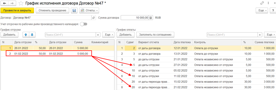 Для графиков оплат от клиентов заполняются варианты отсчета: