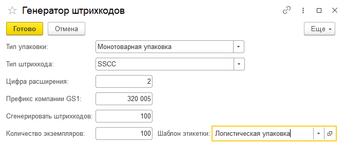 Данная функция предназначена для заблаговременного формирования и печати кодов логистических упаковок, для их последующего нанесения на сформированные упаковки. Этот процесс является альтернативным процессу виртуальной агрегации. В рамках этого процесса напечатанные коды передаются в производство. Сотрудники формируют упаковку и наносят на уже сформированную упаковку распечатанный код. Код сканируется в момент формирования упаковки. До этого сгенерированные коды не связаны с содержимым упаковки и могут быть нанесены на любую упаковку произвольно. Коды можно сгенерировать в формате SSCC или GS1-128.
