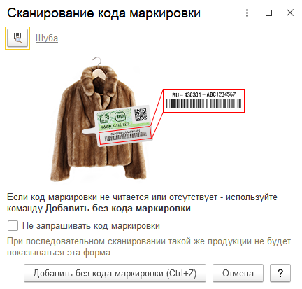 Розничные продажи товаров из натурального меха в РМК производится либо путем считывания EAN + КИЗ либо сразу считыванием КИЗ сканером штрихкода.