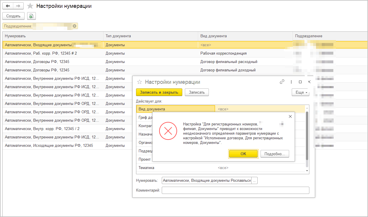 ○ Проверить настройки нумерации на стороне 3.0, чтобы присваивались правильные и корректные номера для соответствующих видов документов по соответствующим разрезам и настройкам.
