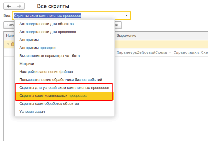 Для настройки обработки также формируется схема. В схеме повторяется тот же порядок выполнения, что и в таблице действий шаблона комплексного процесса.