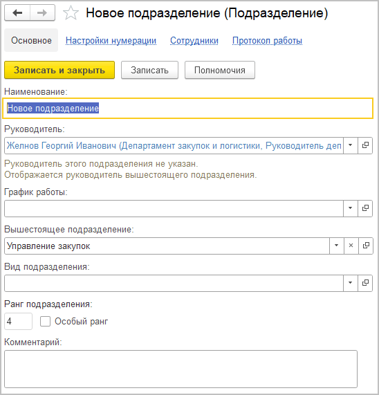 Если не заполнены все руководители в иерархии, то поле Руководитель отображается незаполненным и программа также задает вопрос перед тем, как записать подразделение.