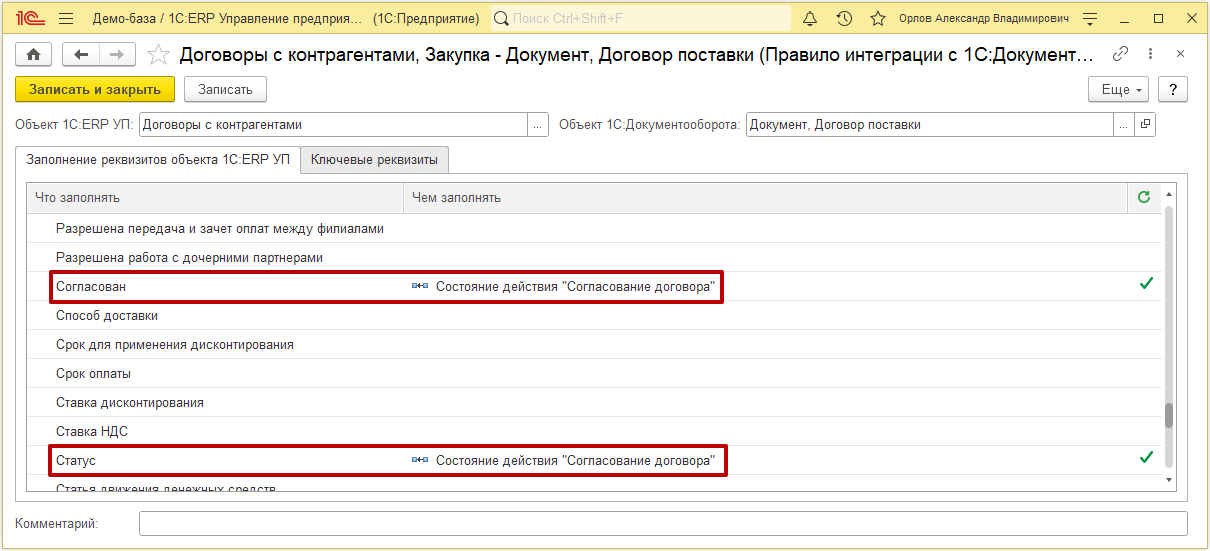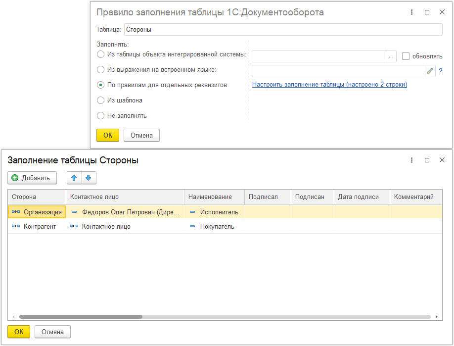 Настройка интеграции выполняется в обеих базах. Причем на стороне интегрируемой системы в правилах интеграции нужно будет указать ссылку на созданные в 1С:Документообороте соответствующие им правила загрузки данных в 1С:Документооборот.