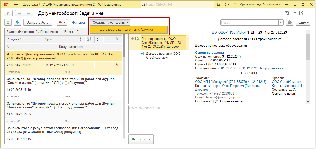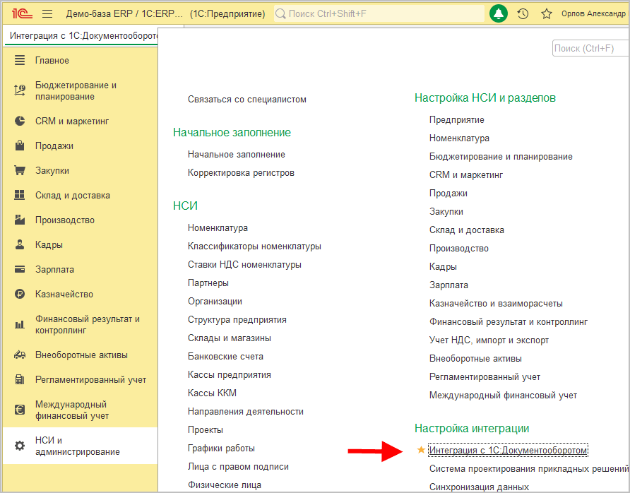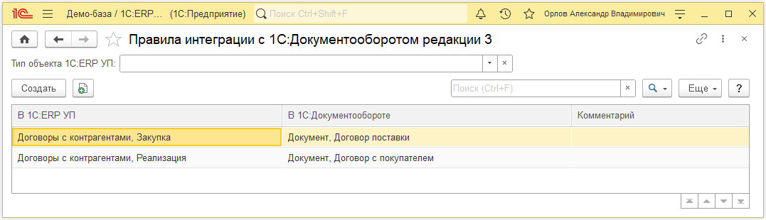 1С:Документооборот может быть одновременно интегрирован с разными системами. Переключаться между ними можно в списке.