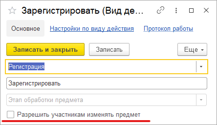 Для видов действий, загруженных в виды документов, для участников необходимо предоставить право на изменение документа. Иначе не будет работать, например, действие Регистрация.