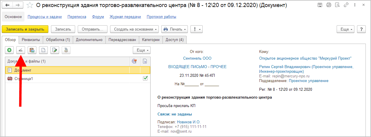 Возможности доступны пользователям с полномочием Делопроизводители.