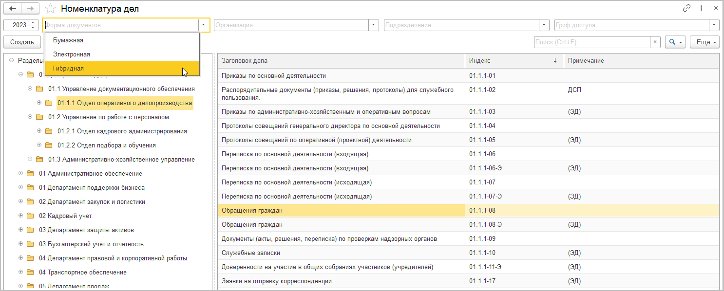 Появилась возможность выгружать гибридные дела в 1С:Архив.