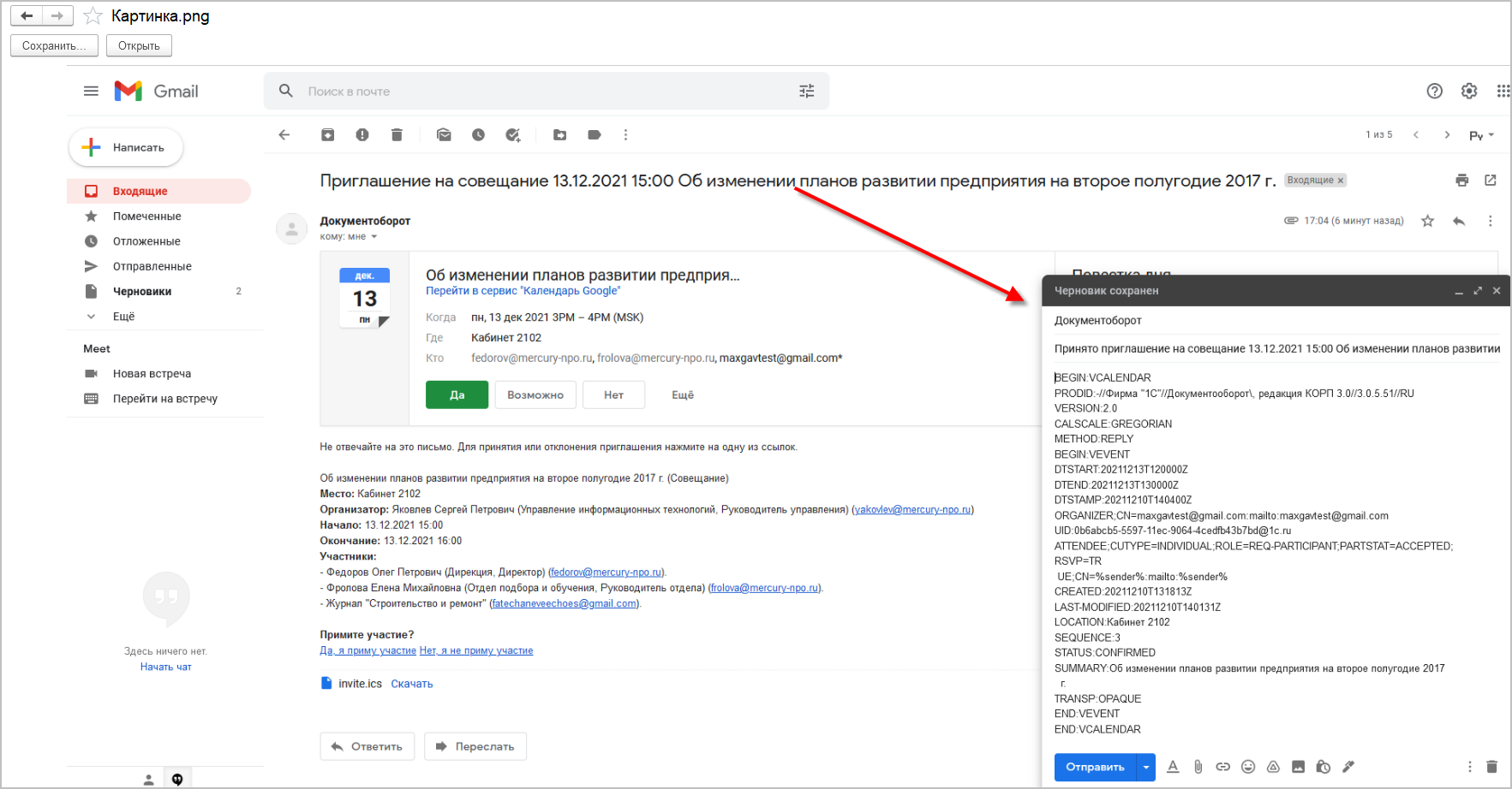 При принятии / отклонении приглашения в карточке мероприятия участником, автоматически будет обновляться состояние приглашений в карточке мероприятия.