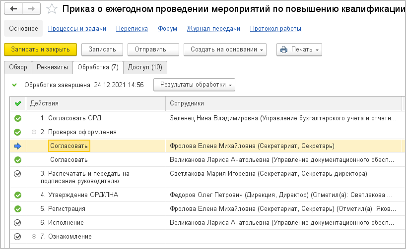 Таким образом, обработка мероприятий настраивается и выполняется по аналогии с обработкой документов. Но есть некоторые отличия: