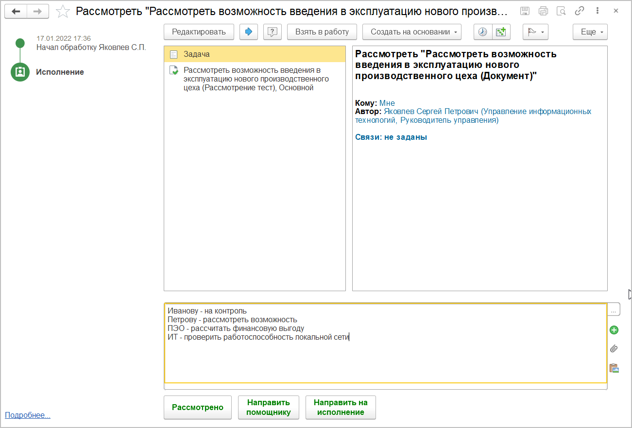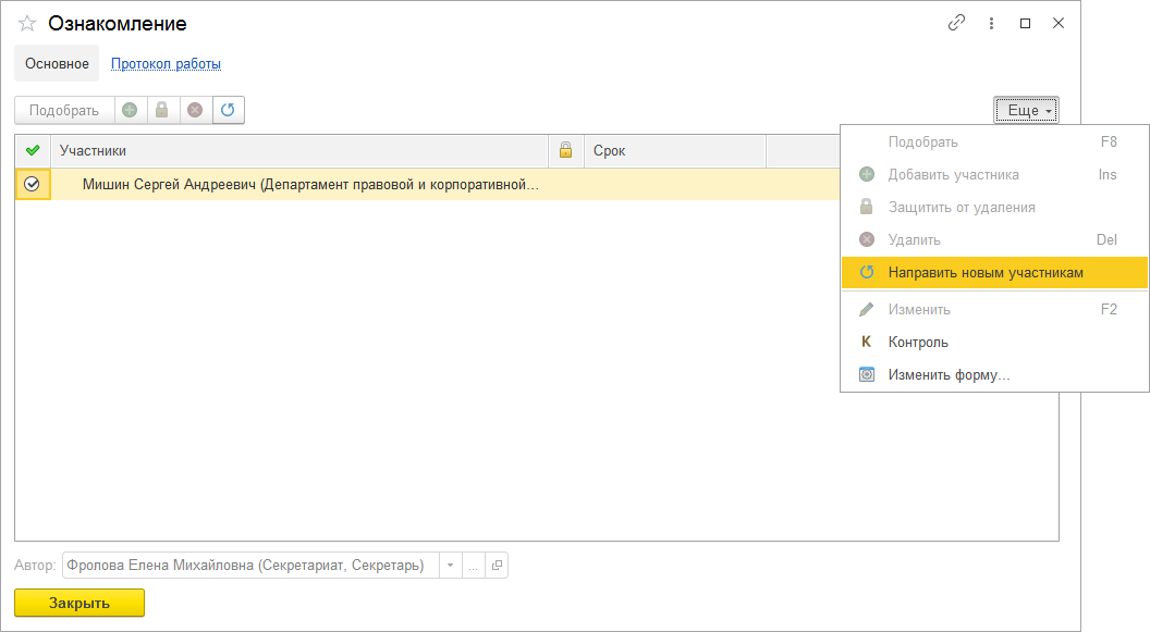 Новая версия программы поддерживает расширенные автоподстановки для действий исполнения. Они позволяют указать не только участника, но и срок, описание и наименование задачи. Это необходимо для исполнения протокола, где эти данные выгружаются из пунктов протокола вместе с исполнителями.