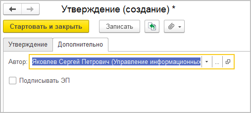 После выбора шаблона открывается карточка незаписанного документа «1С:Документооборота». В карточке вне зависимости от указанного в шаблоне заполняются: