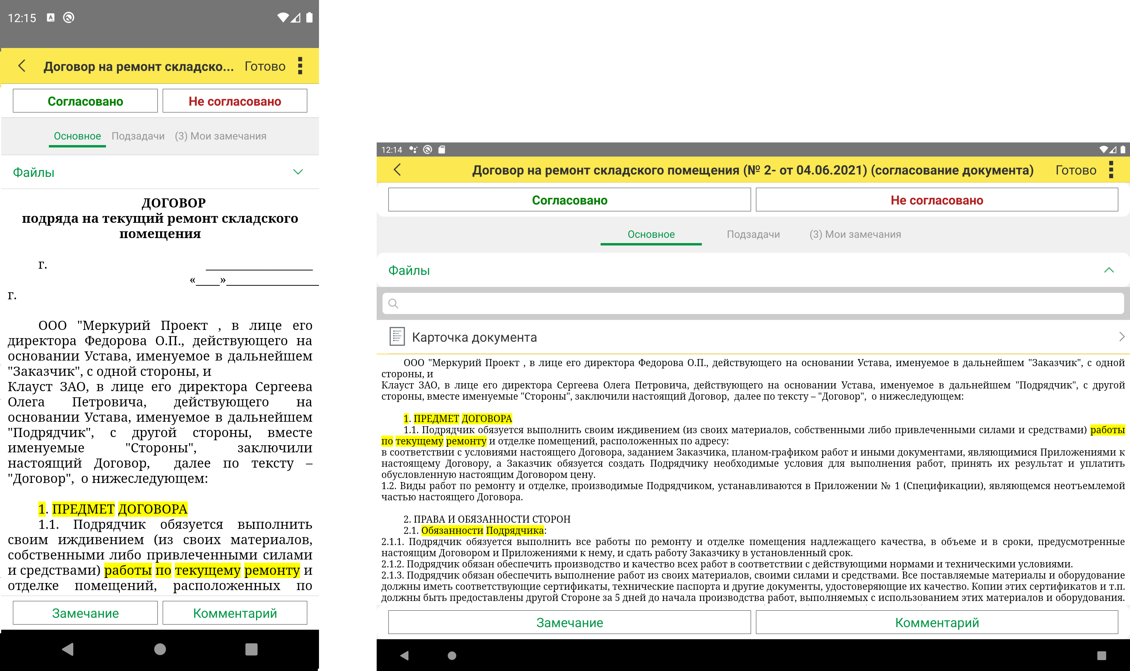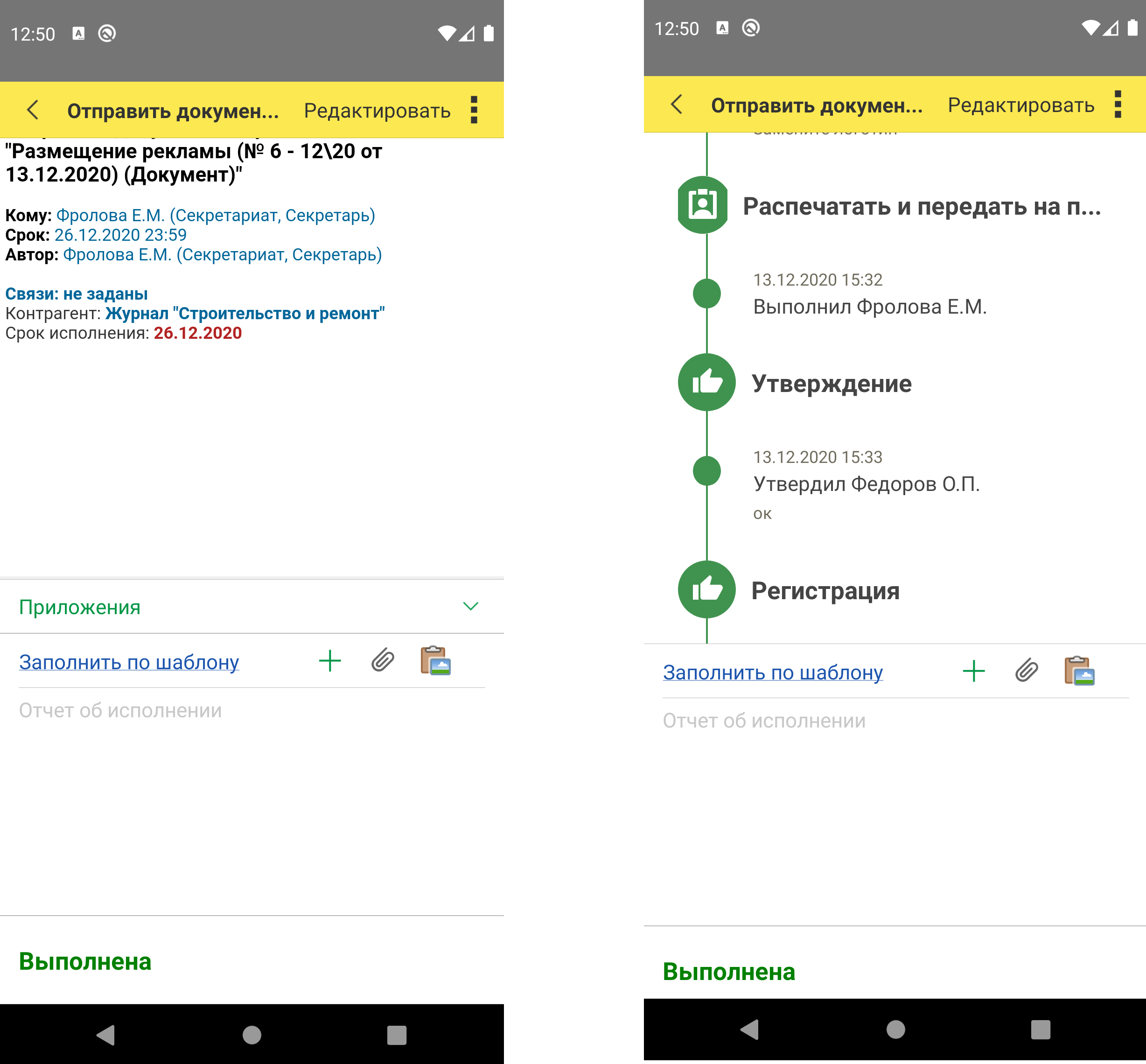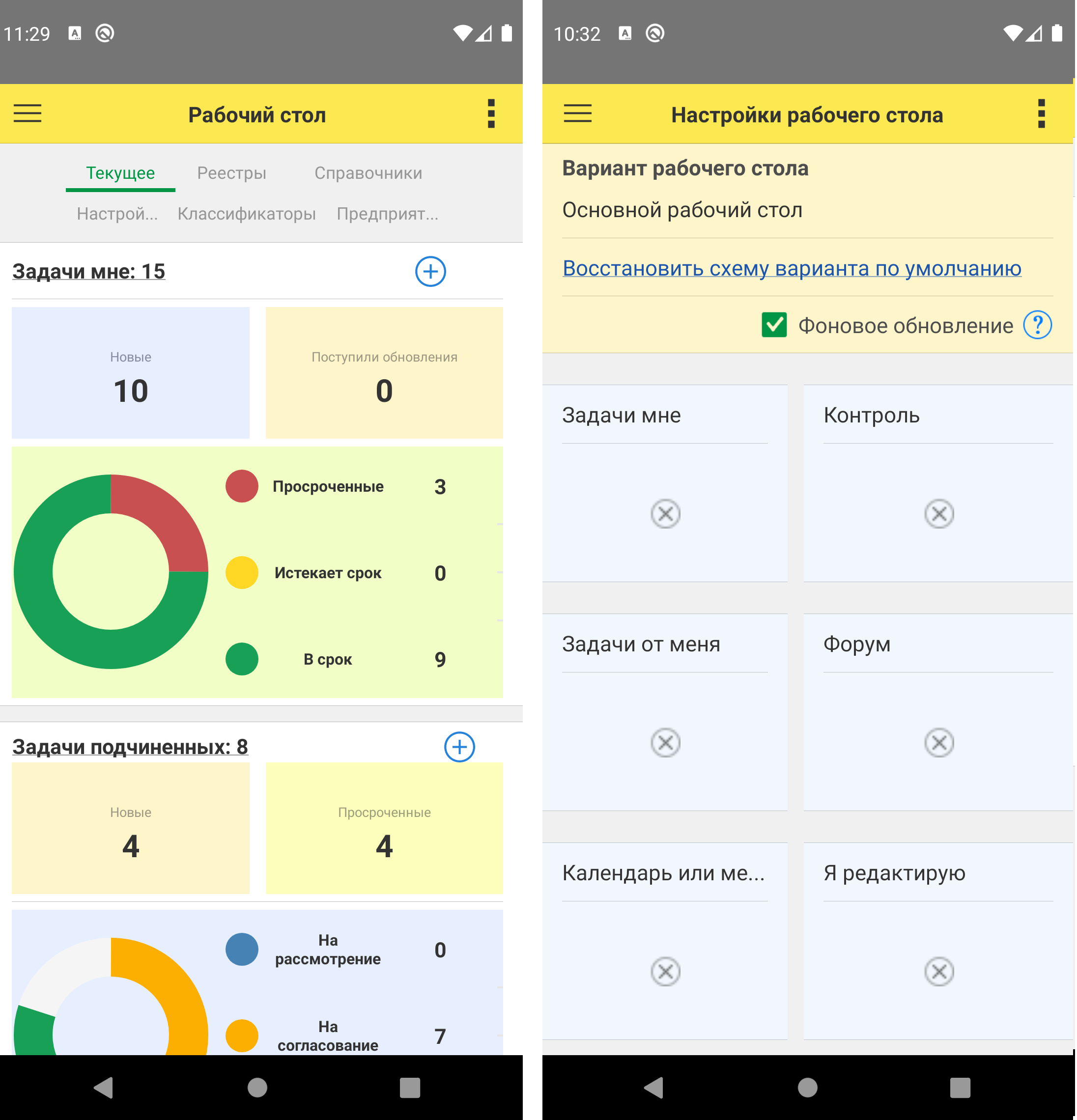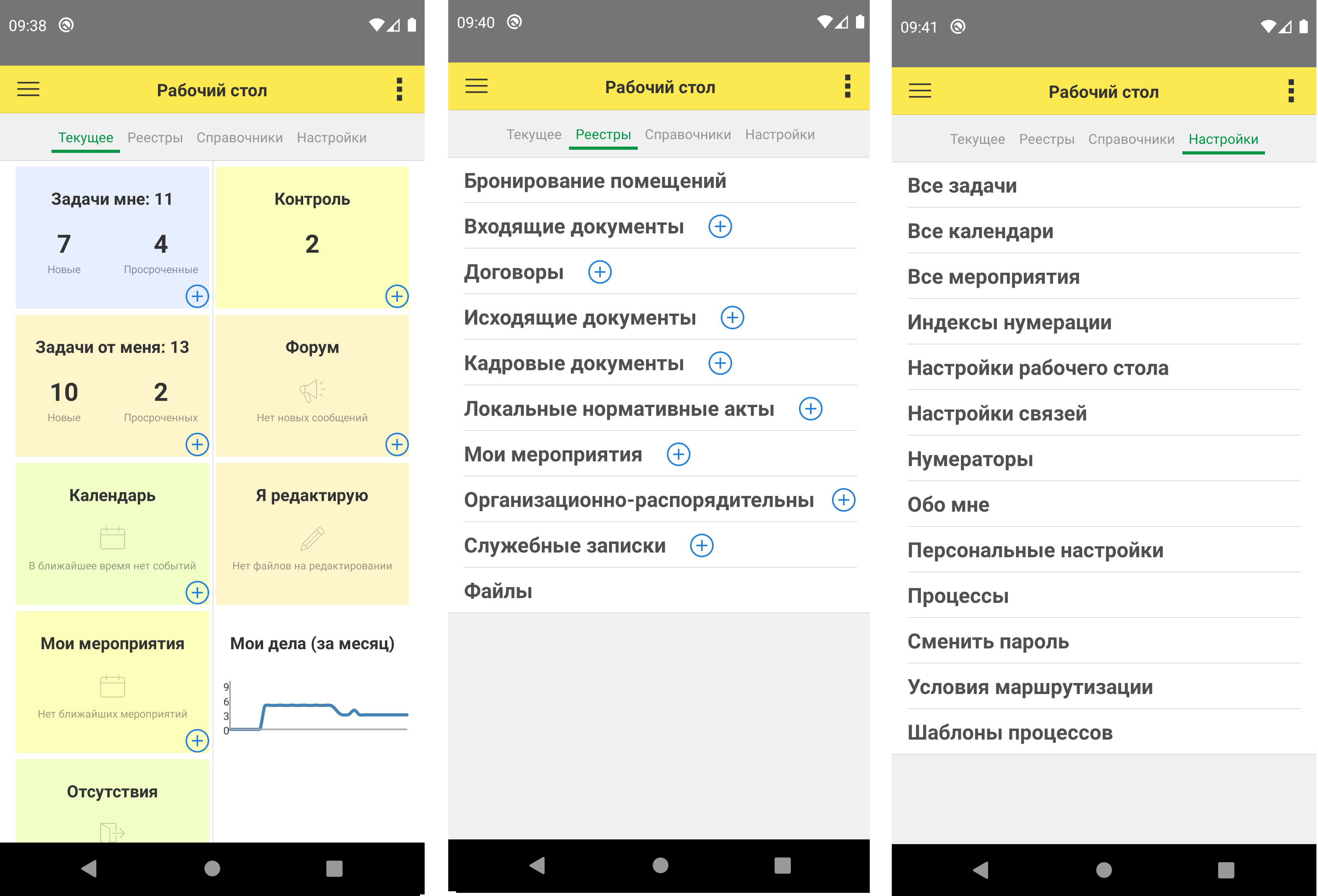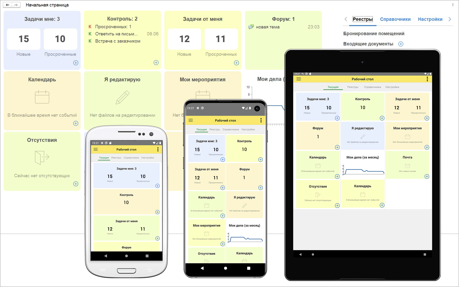 Начиная с версии 3.0.3 основные экранные формы и элементы управления «1С:Документооборота адаптированы под работу на мобильном клиенте».