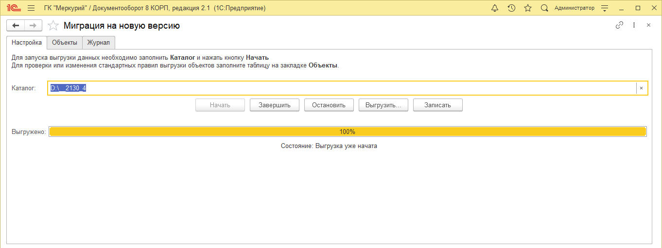Текущая версия программы предназначена для ознакомления с порядком миграции данных. В полном объеме миграция будет работать только после выпуска релиза 2.1.30, в который войдут необходимые для этого доработки.