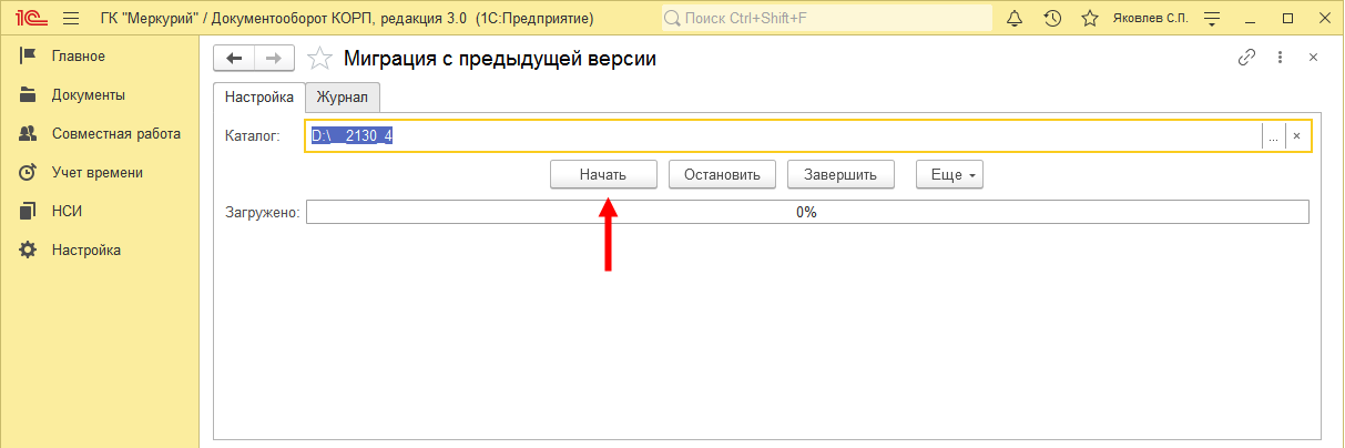 4. В открывшемся окне указать тот же путь каталога обмена, что и в 2.1, и нажать Начать.
