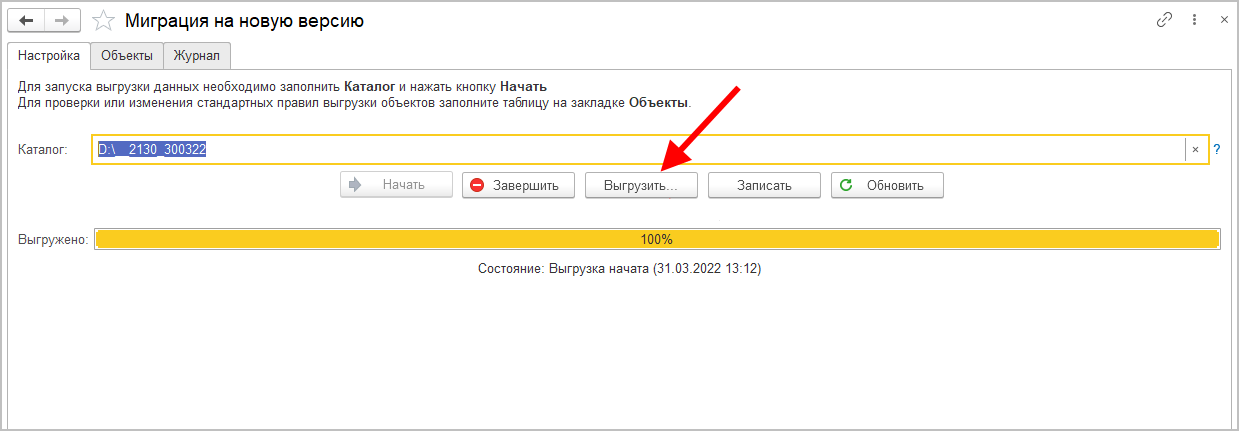 Для этого в окне миграции предусмотрена команда Выгрузить.