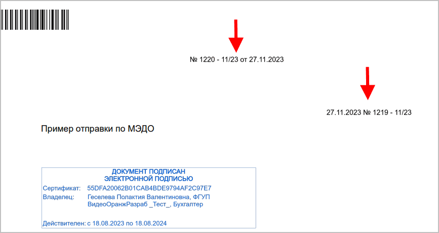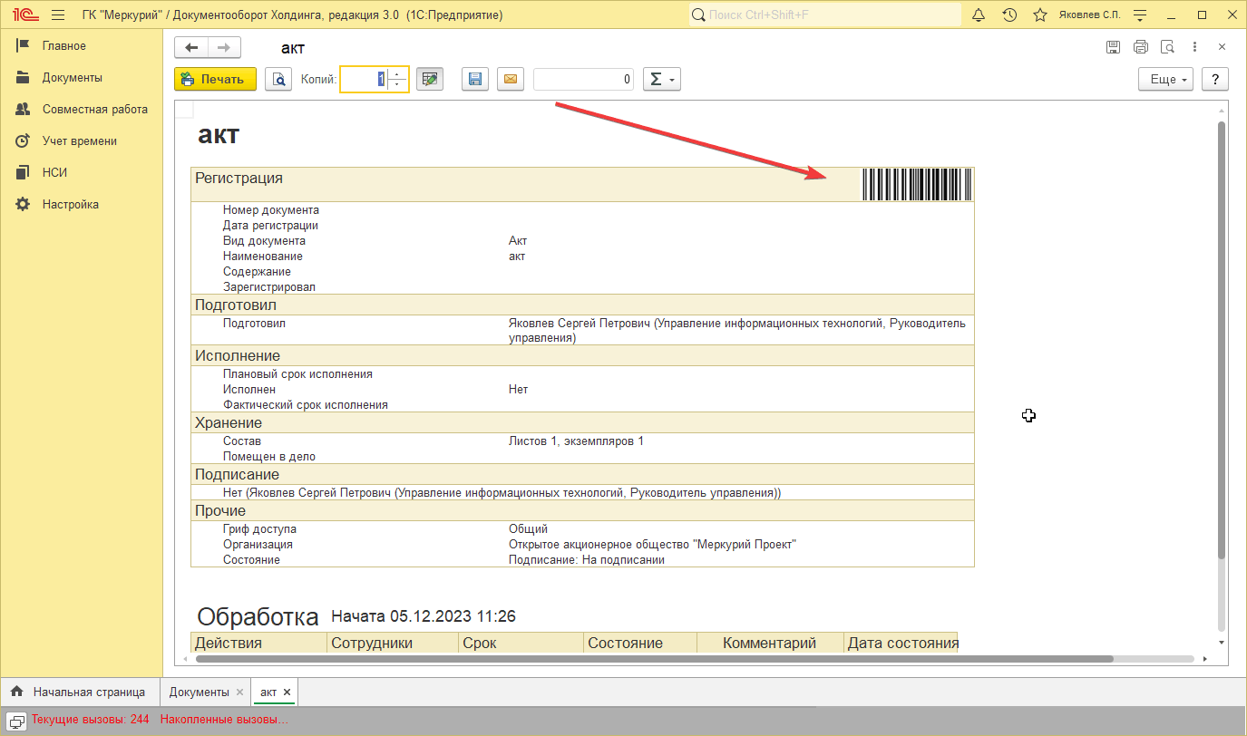 Для этого необходимо получить документ по МЭДО, зарегистрировать на своей стороне, кликнуть на главный файл документа и выполнить команду Вставить регистрационный штамп и штрихкод.