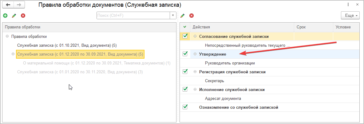 В новой версии программы из схемы обработки документа и мероприятия можно перейти прямо к настройкам правила.