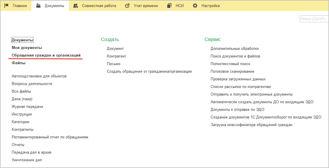 Теперь в 1С:ДГУ настройка Учет обращений граждан включена по умолчанию.