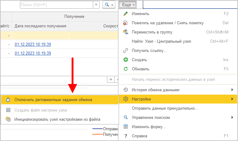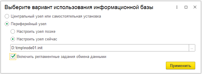 ○ Включить регламентные задания обмена данными (команда Включить регламентные задания обмена в меню Еще списка узлов).