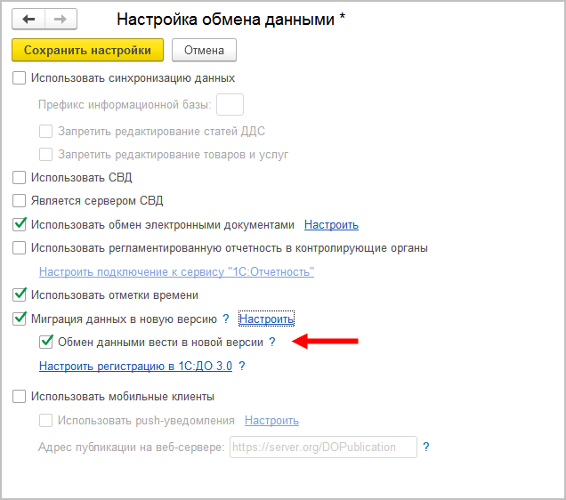 3. В разделе Настройка – Настройка программы – Обмен данными включить Контролируемый обмен данными.