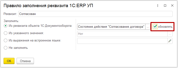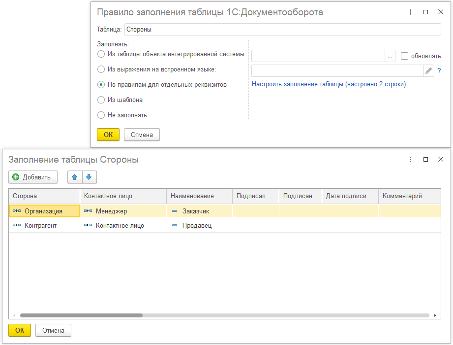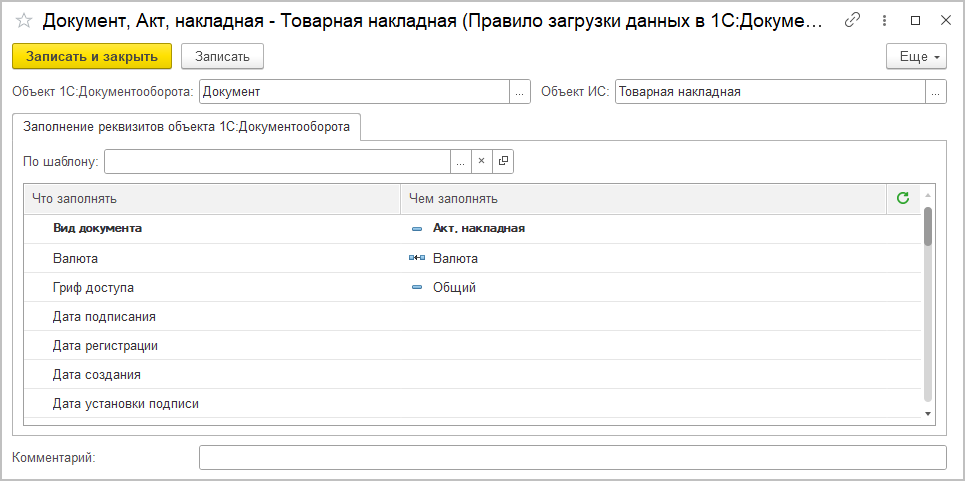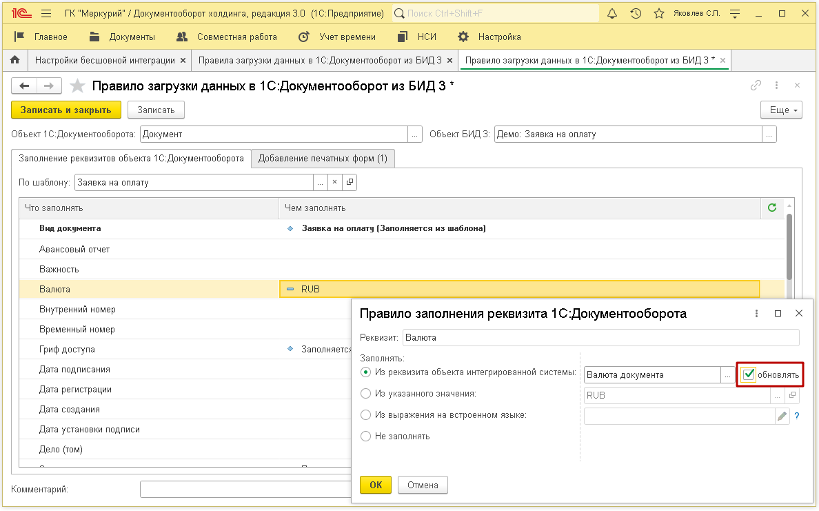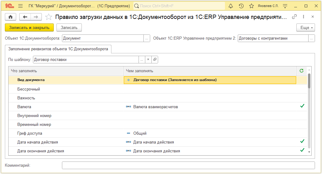 При автоматическом создании настраивается правило заполнения реквизитов создаваемого документа, аналогично таковым при бесшовной интеграции 1С:Документооборот с другими системами «1С».