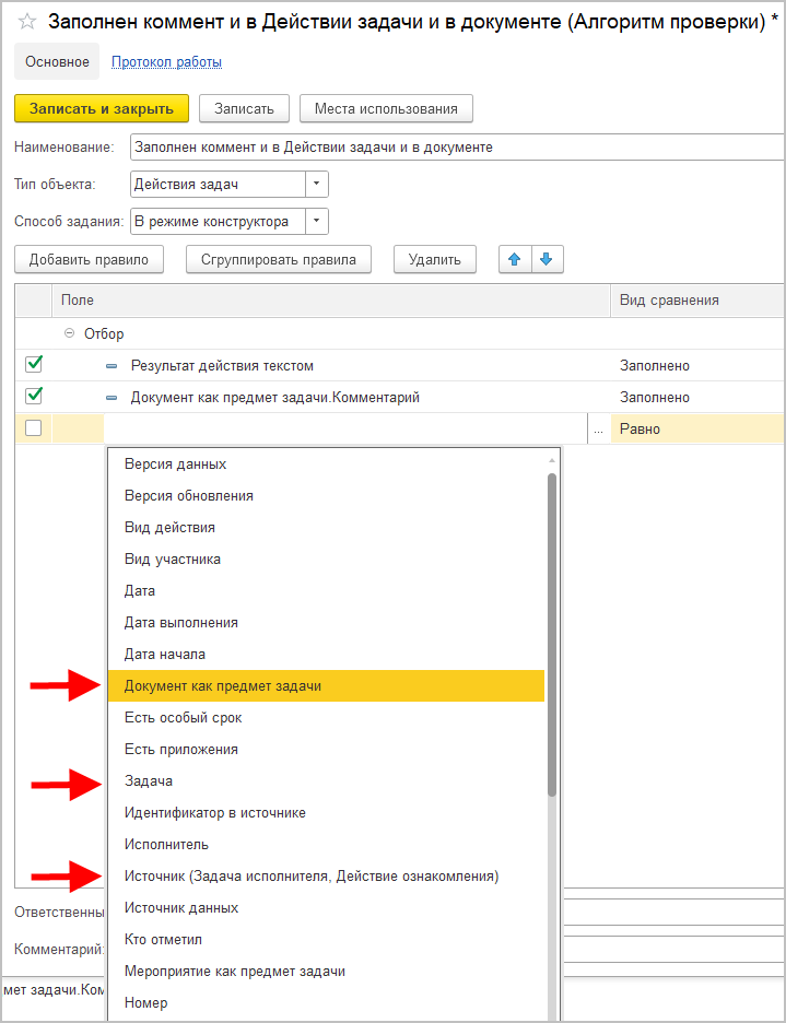 ■ Любой сотрудник, имеющий доступ к документу, мог отредактировать алгоритм проверки в действии обработки документа.