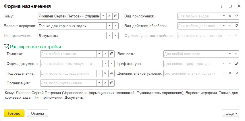 В новой версии программы можно настроить правила обработки документов и мероприятий по следующим разрезам: