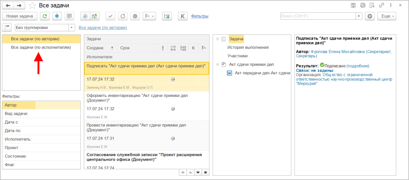 ■ В списке "Все задачи" не было возможности просмотреть все задачи из-за существующих группировок.