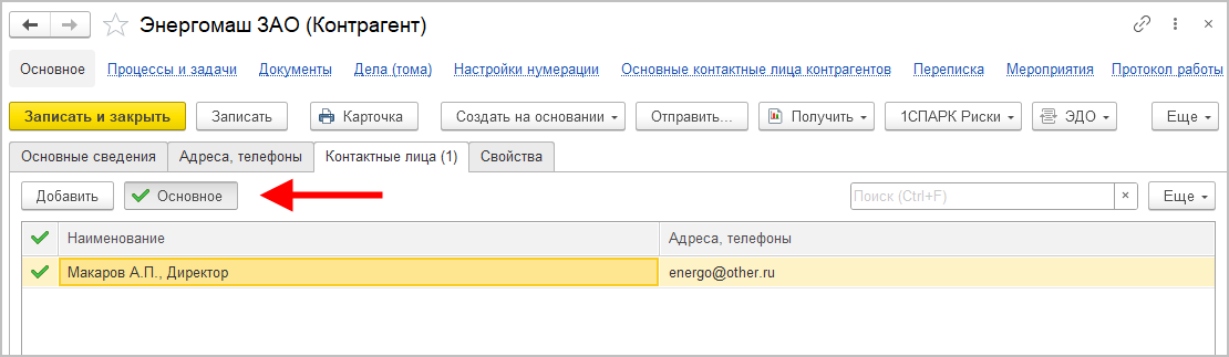 При необходимости настройки отправки можно уточнить до организации и контрагента: